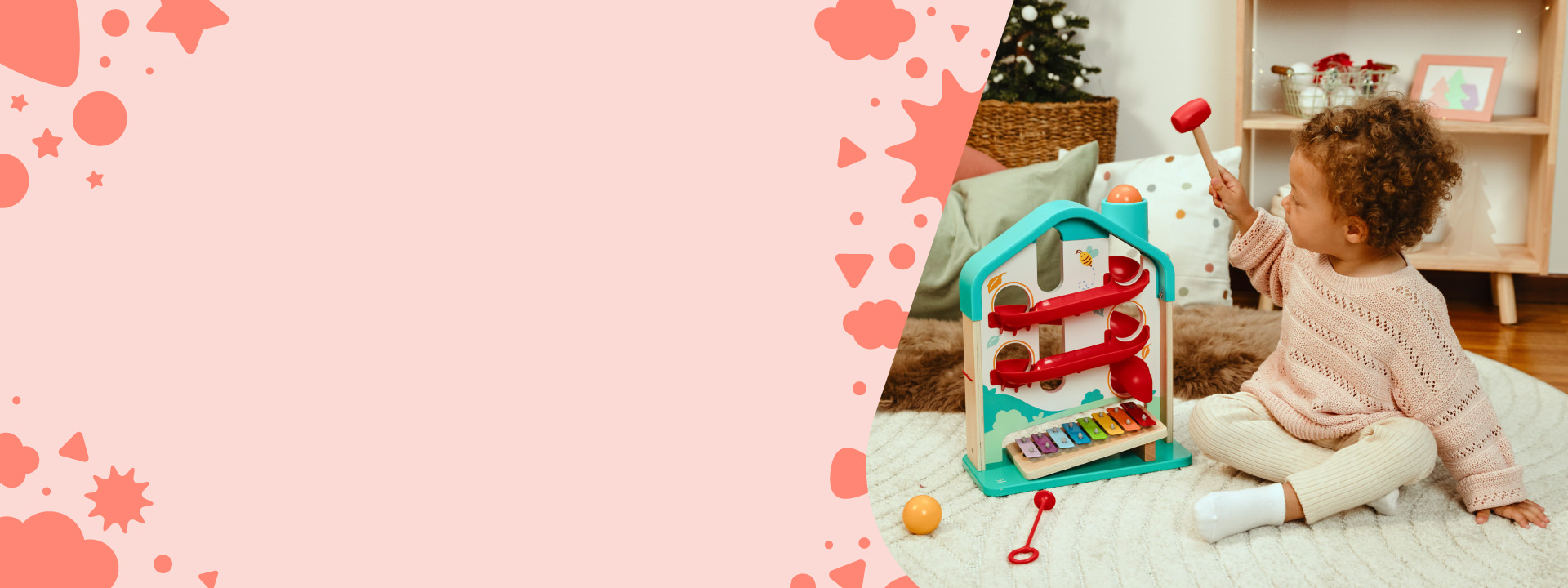 Eine Auswahl an sicherem und langlebigem Spielzeug, das entwickelt wurde, um die Neugier und das Staunen deines Babys von Anfang an zu wecken.