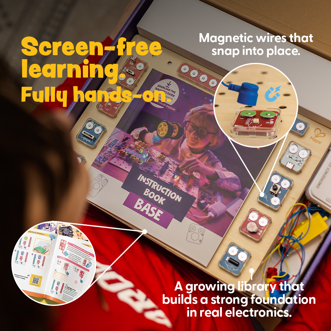 Mit dem Labbox Base-Set können Kinder spielerisch lernen! Dieses Set wurde als Einsteiger-Set für Elektronik entwickelt und führt Kinder in die grundlegenden Konzepte des Schaltkreisaufbaus ein. Mit 10 intelligenten elektronischen Blöcken, 47 Teilen und über 100 Schaltkreisen können Pädagogen und Eltern einen spannenden MINT-Unterricht (Mathematik, Informatik, Naturwissenschaft und Technik) gestalten. Das Set enthält ein Anleitungsbuch und angeleitete Projekte, um eine nahtlose Einführung in die Elektronik im Klassenzimmer zu gewährleisten. Perfekt für Schulen, Kindergärten und MINT-Lehrkräfte, die Elektronik spielerisch vermitteln wollen!