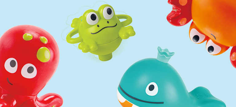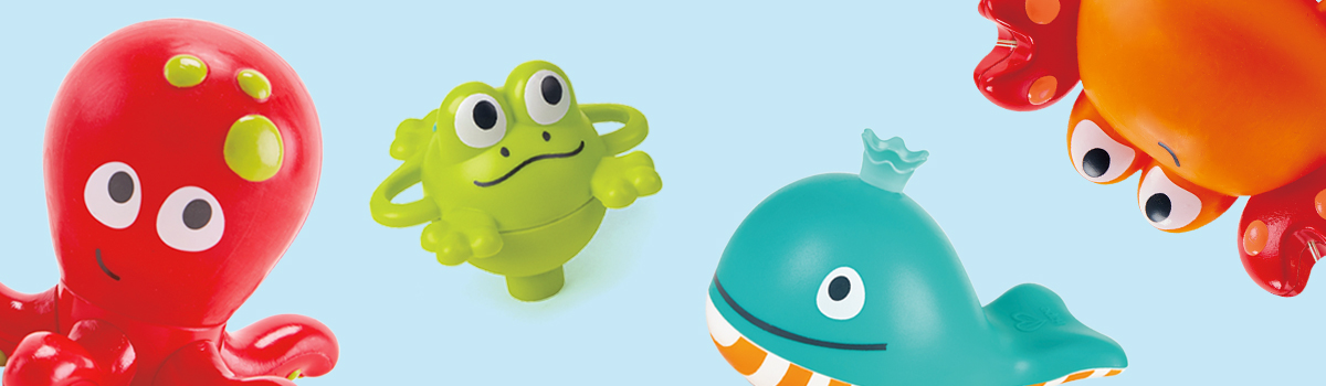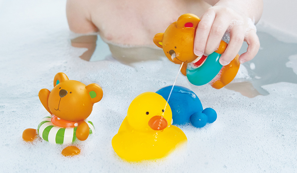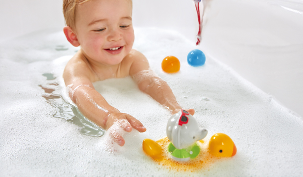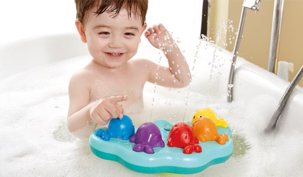 Diese kleinen Wasserspritzfreunde sorgen für viel Spaß beim Schaumbad in der Wanne.
