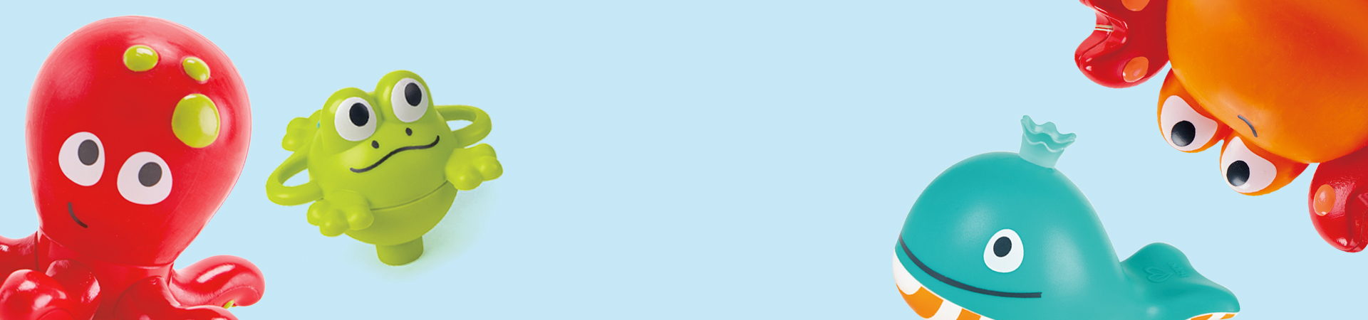Diese niedliche Krabbe und der Fisch haben ein witziges Geheimnis! Wenn du sie mit Wasser füllst und zusammendrückst, schießen sie das Wasser wieder heraus. Sie bringen spritzigen Spaß in die Badewanne!