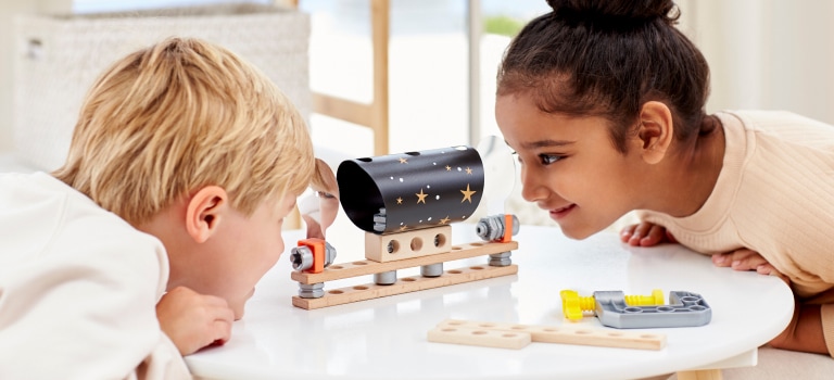 Physik kinderleicht erleben: mit dem Erfinder Starter Set! Es enthält einfach zu bedienende Teile und Werkzeuge und ist kompatibel mit anderen Junior Erfinder-Sets.