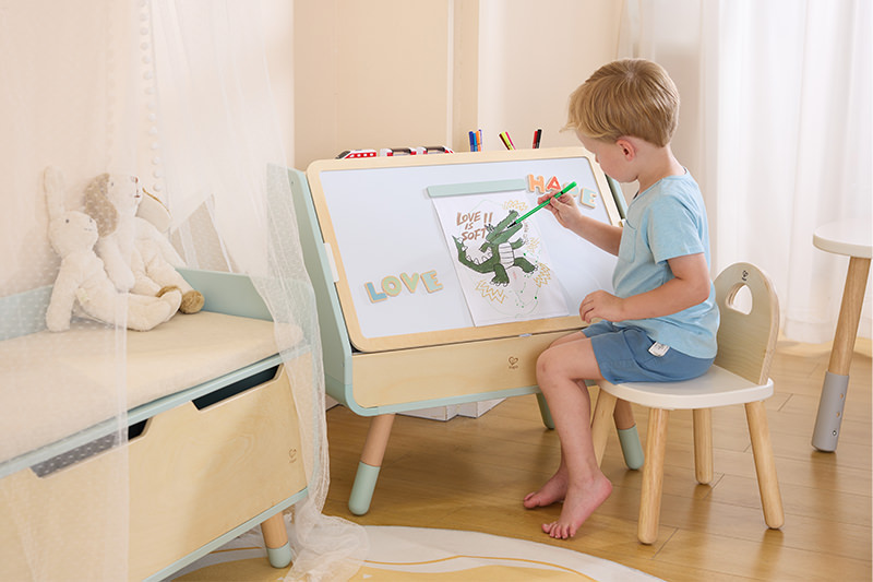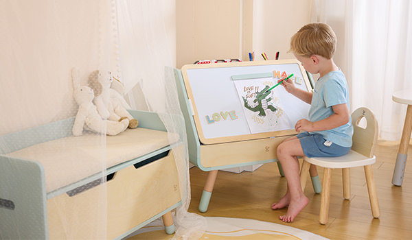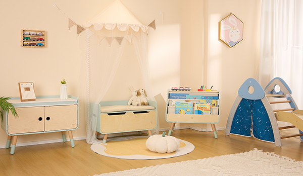 Stell dir einen Raum vor, in dem sich die Kreativität deines Kindes entfalten kann und alles seinen Platz hat.