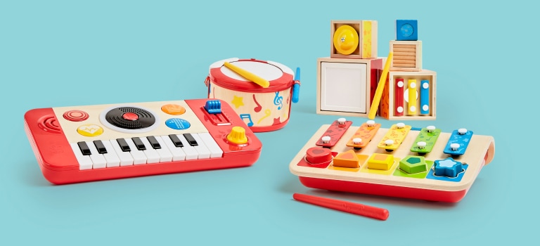 Dieses tragbare Musikinstrument überzeugt kleine DJs sofort. Es ist perfekt, um ihren ersten Sound zu kreieren. Das integrierte Keyboard bietet vier Instrumentenklänge und sorgt mit 18 lustigen Soundeffekten dafür, dass die Party so richtig abgeht.